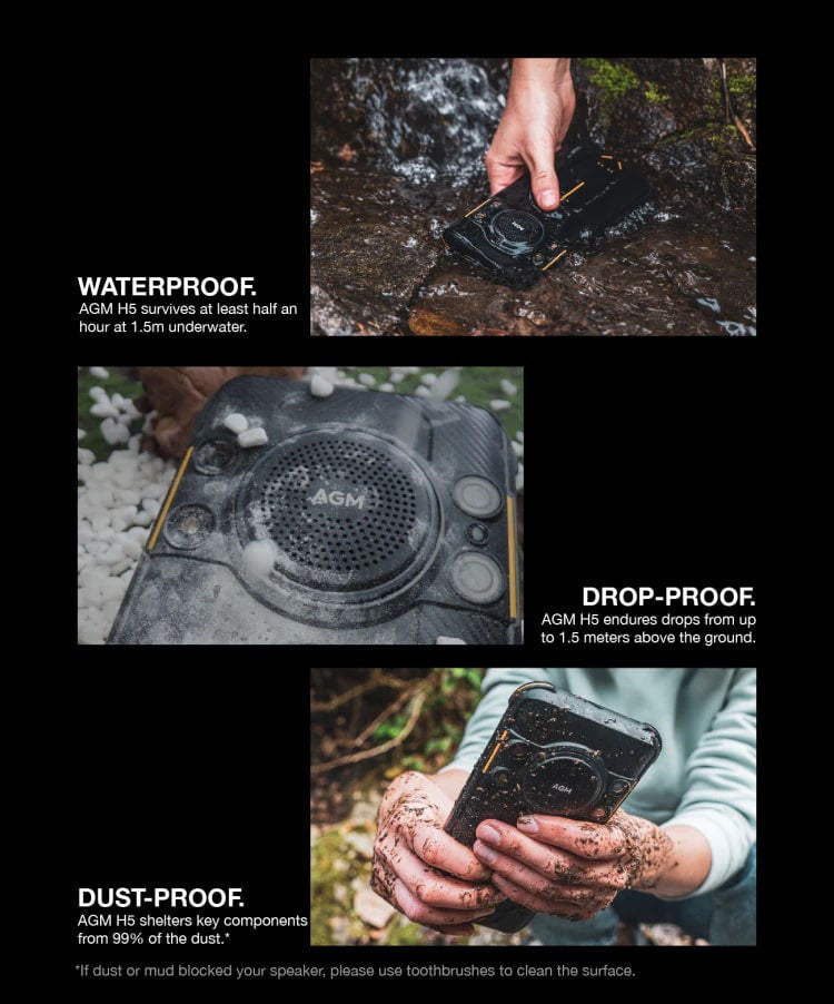 AGM H5 endures drops from up to 1.5 meters above the ground.
