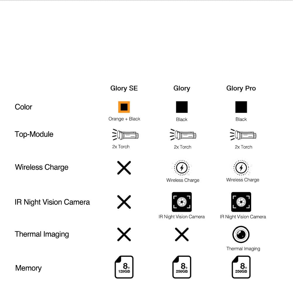 The Glory imaging system will help you look beyond the scope, and always tells you what hides beneath the surface. To ensure your safety under different environments, the system identifies dangers before it happens. The Sony 48MP main camera will collect what you see into an AI-enhanced photo. The thermal imaging camera pictures an object's heat radiation. and visualizes the temperature difference between objects. The night vision camera captures objects' infrared reflections,presents vivid greyscale details of objects under no visible light. The macro camera will stage the world around you in a more detailed way.